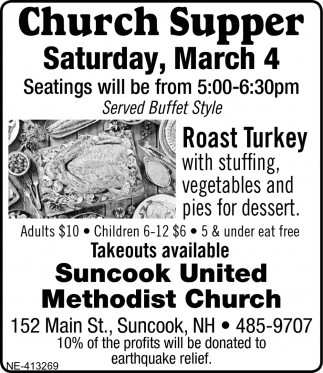 Jan 06, 2023. Suncook United Methodist Church Church Ads from Concord Monitor