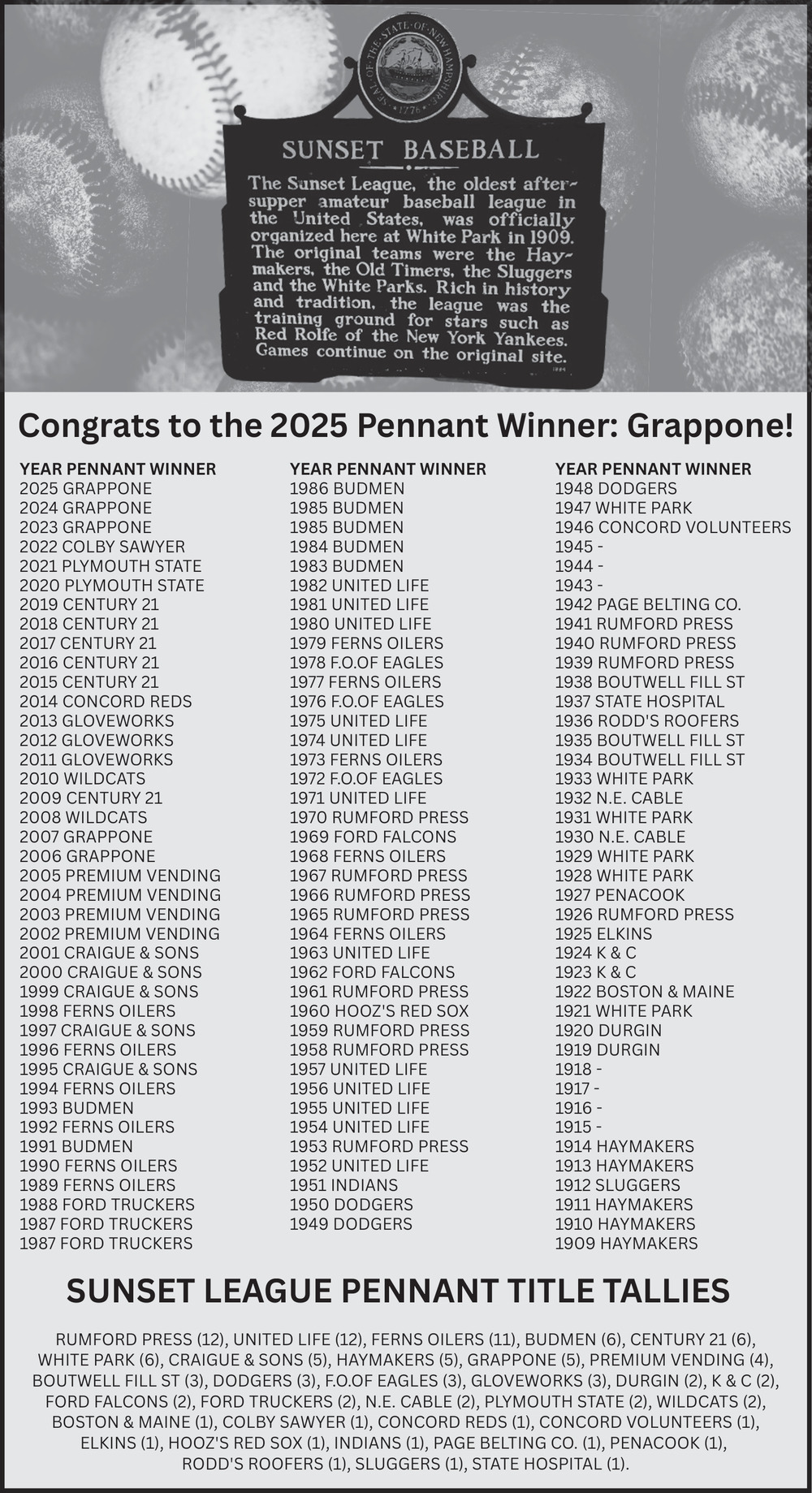 Congrats to the 2025 Pennant Winner: Grappone!