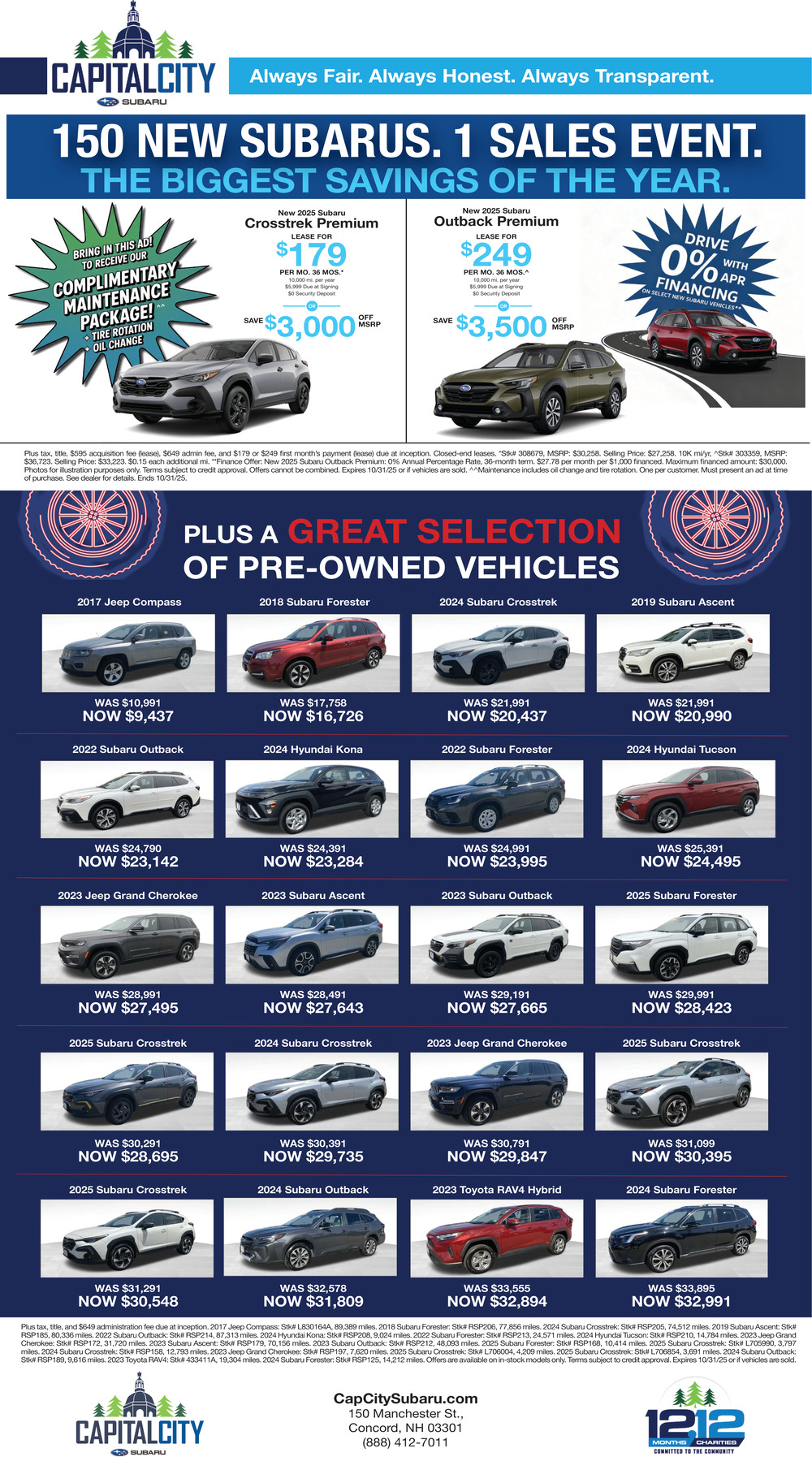 Ads for Capital City Subaru in Concord, NH