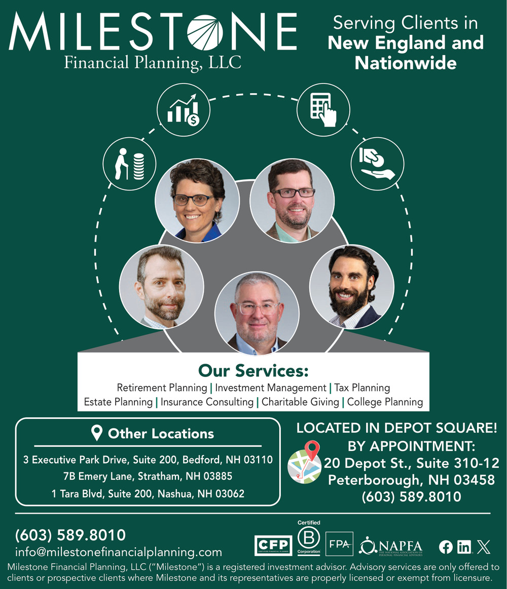 Ads for Milestone Financial Planning, LLC in Peterborough, NH