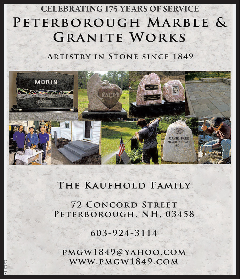 Oct 18, 2025. Peterborough Marble And Granite Works Funeral Ads from Concord Monitor