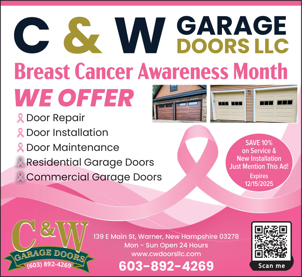Oct 23, 2025. C&W Garage Doors LLC Door Installations Ads from Concord Monitor