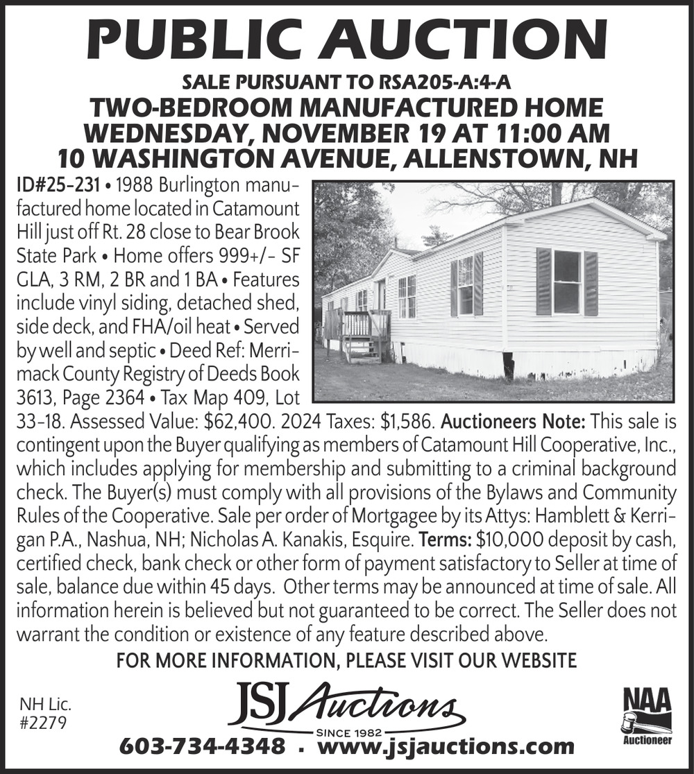 Oct 25, 2025. JSJ Auctions Auction Ads from Concord Monitor