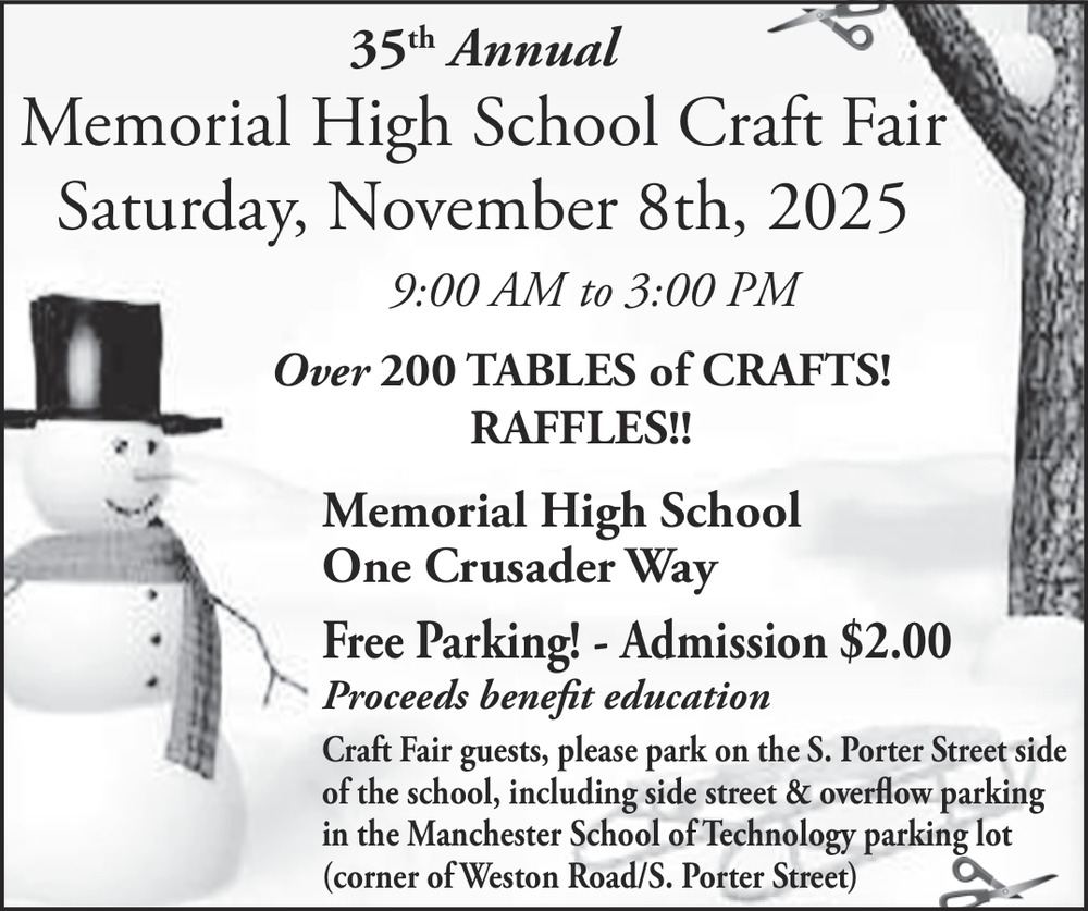 Nov 05, 2025. 35st Annual Memorial High School Craft Fair Events Ads from Concord Monitor