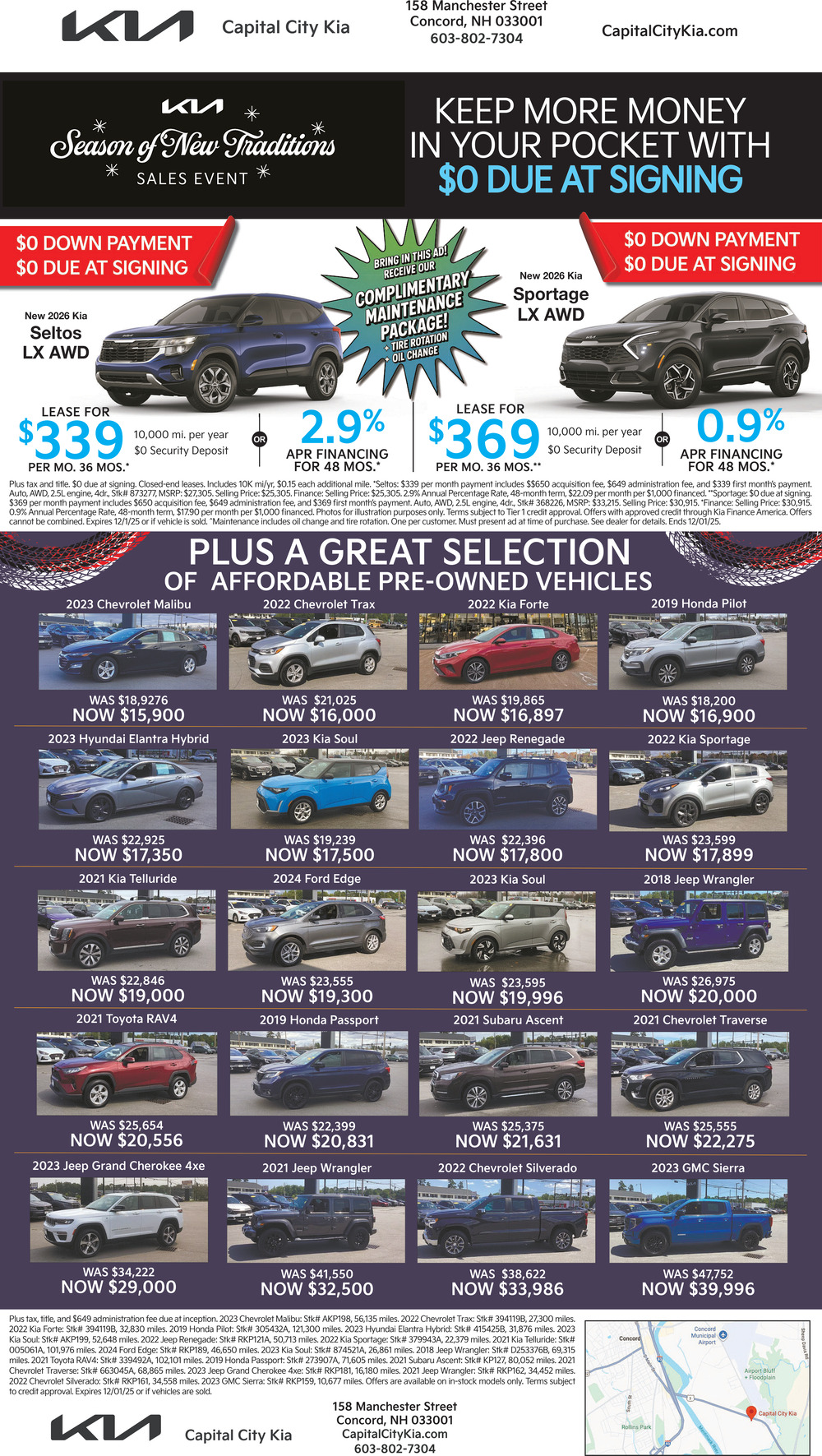 Nov 26, 2025. Capital City Kia Auto Dealers Ads from Concord Monitor