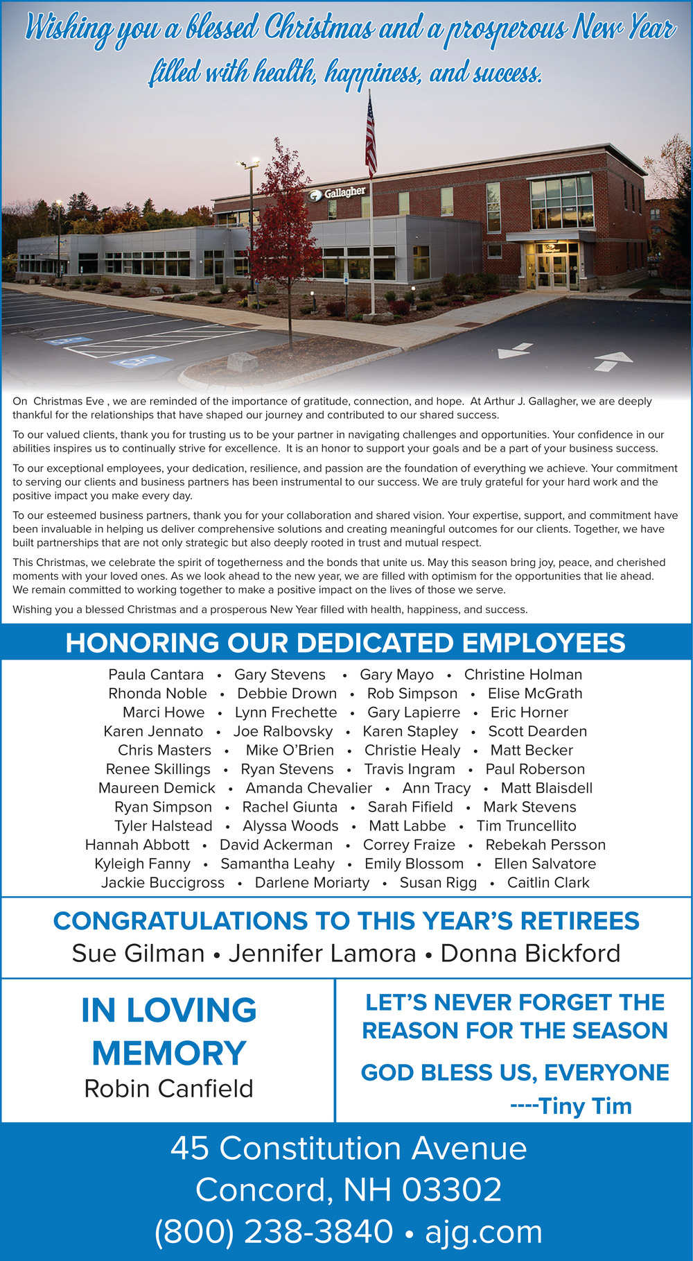 Dec 24, 2025. Gallagher Insurance Insurance Ads from Concord Monitor