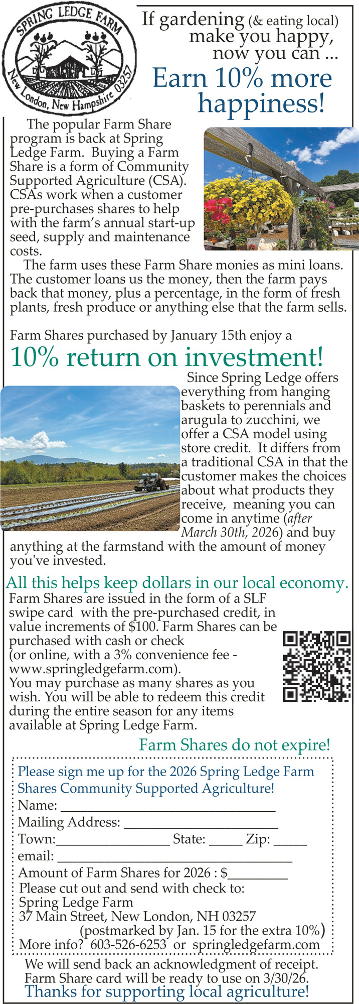 Jan 10, 2026. Spring Ledge Farm Agriculture Ads from Concord Monitor