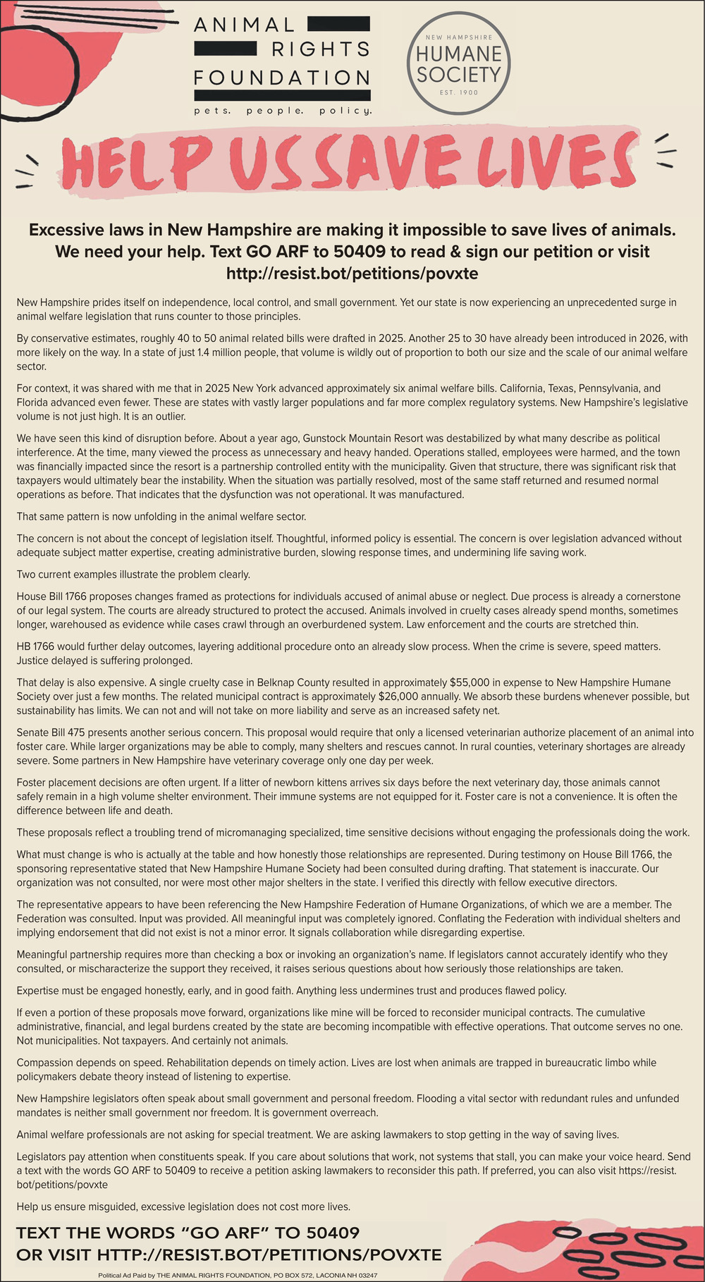 Ads for Animal Rights Foundation in Laconia, NH