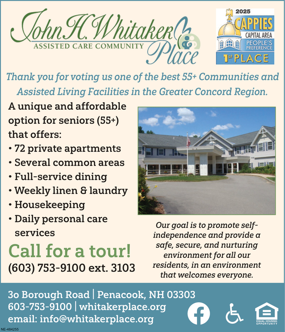 Apr 18, 2026. John H. Whitaker Place Senior Living Ads from Concord Monitor