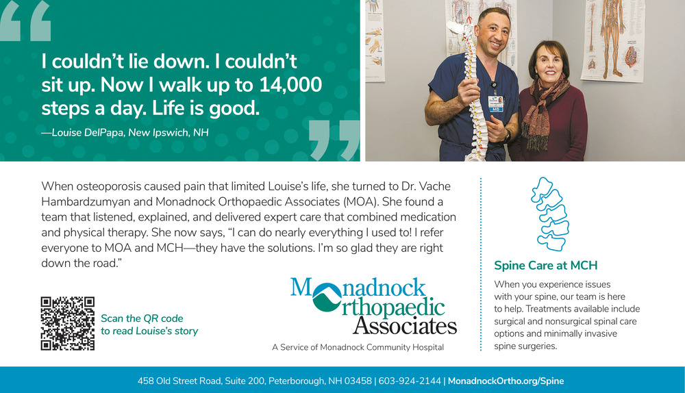 Apr 18, 2026. Monadnock Orthopaedic Associates Medical Ads from Concord Monitor