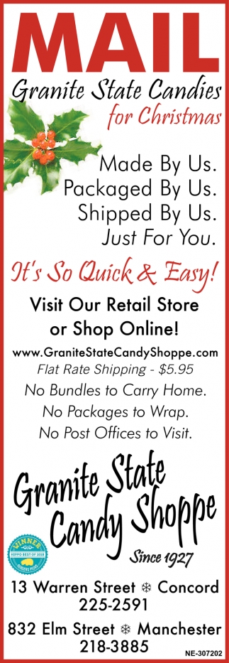 Dec 03, 2019. Granite State Candy Shoppe Restaurants Ads from Concord Monitor