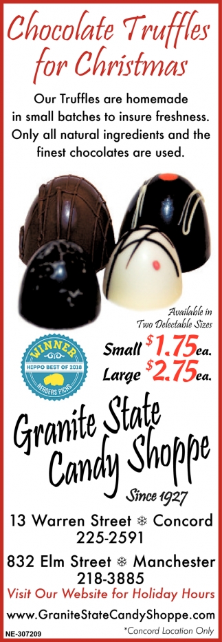 Dec 14, 2019. Granite State Candy Shoppe Restaurants Ads from Concord Monitor