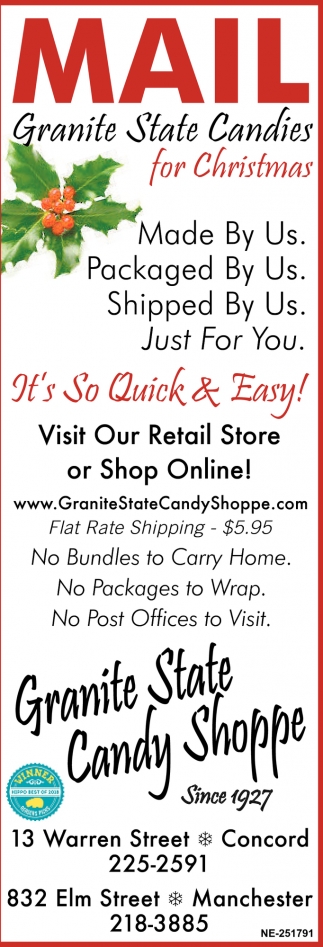 Dec 01, 2018. Granite State Candy Shoppe Restaurants Ads from Concord Monitor
