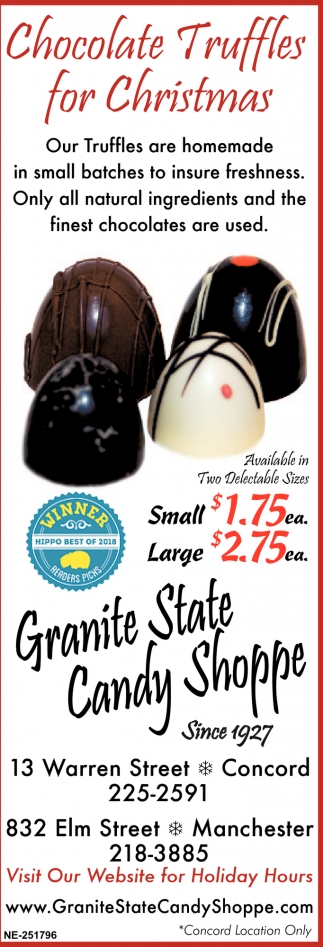 Dec 08, 2018. Granite State Candy Shoppe Restaurants Ads from Concord Monitor