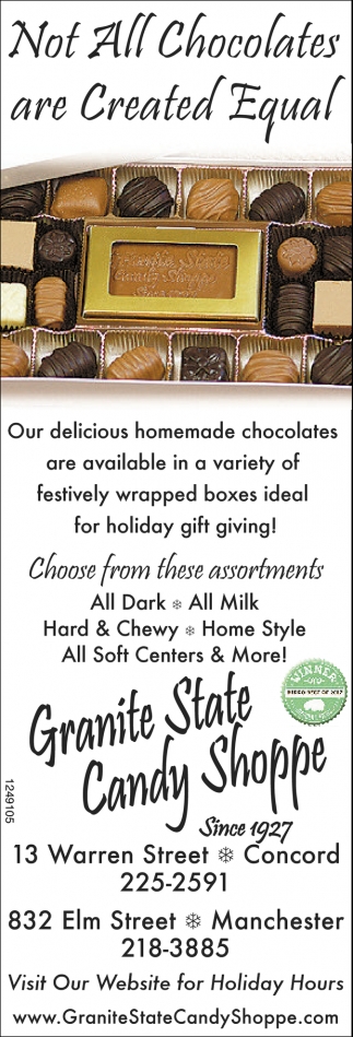 Dec 12, 2018. Granite State Candy Shoppe Restaurants Ads from Concord Monitor